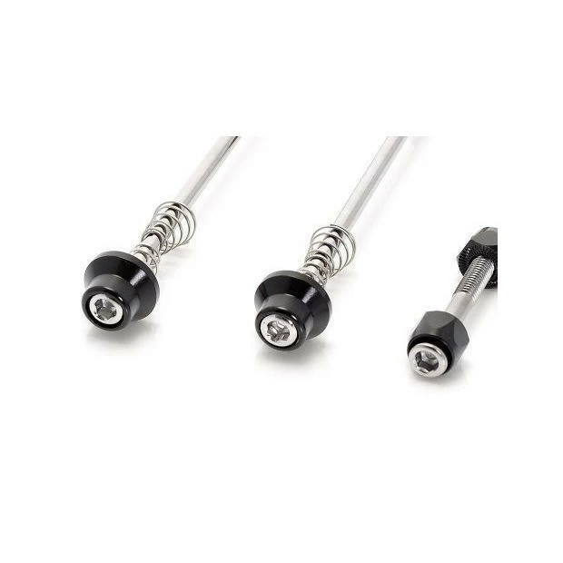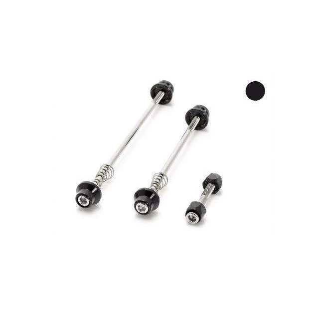 Ce kit de sécurité est composé d’aluminium et remplace le blocage rapide classique des roues et du collier tige de selle contre des axes à vis. Il évite ainsi le vol des roues et de la selle. Les axes à vis s’ouvrent et se ferment avec une vis allen.