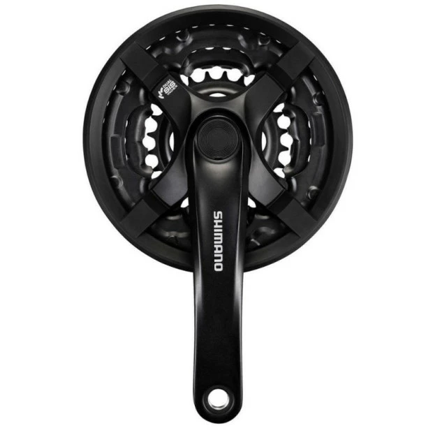 Le pédalier Shimano Tourney FC-TY501 est compatible avec les transmissions 3×8, 3×7 et 3×6 vitesses. Il permet un passage de vitesses Dual SIS fiable et précis.